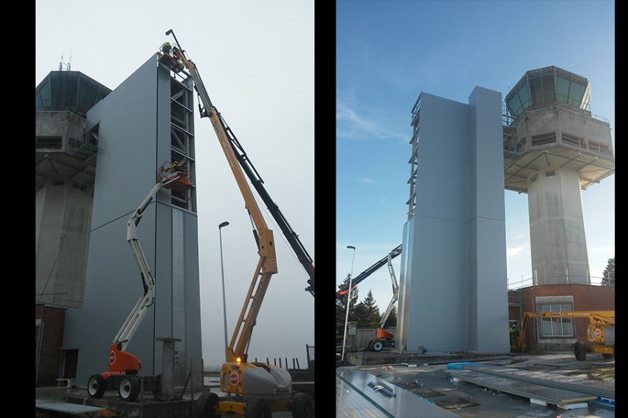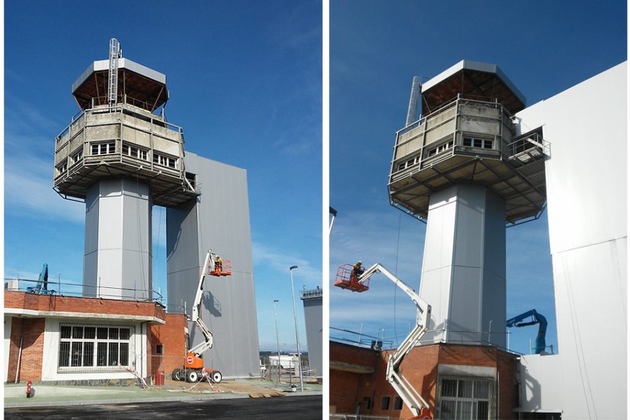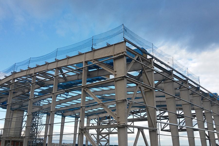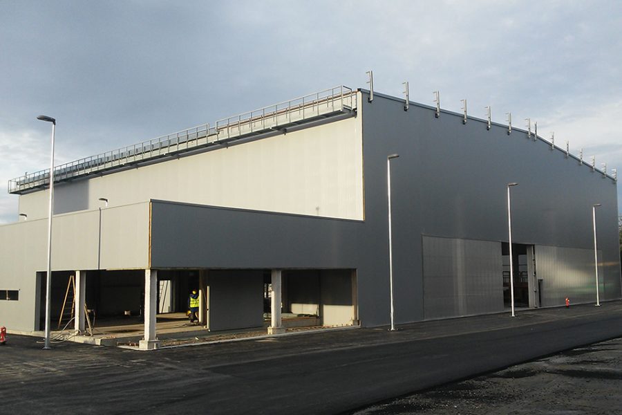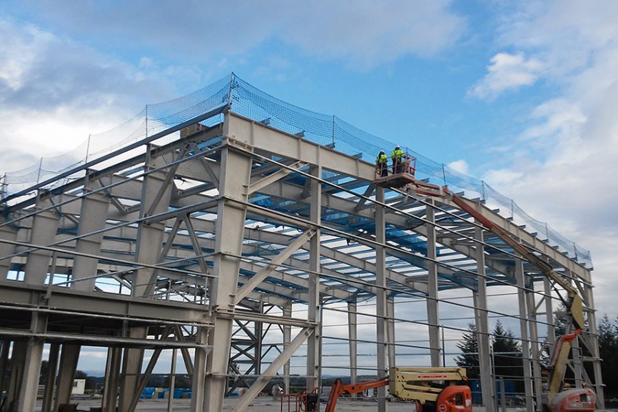 Ejecución de la estructura metálica del nuevo hangar del aeródromo de Rozas en Castro de Rei, Lugo.