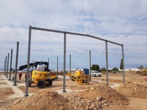 Ejecución de la estructura metálica del nuevo hangar del aeródromo de Rozas en Castro de Rei, Lugo. El aeródromo pronto será la envidia del territorio